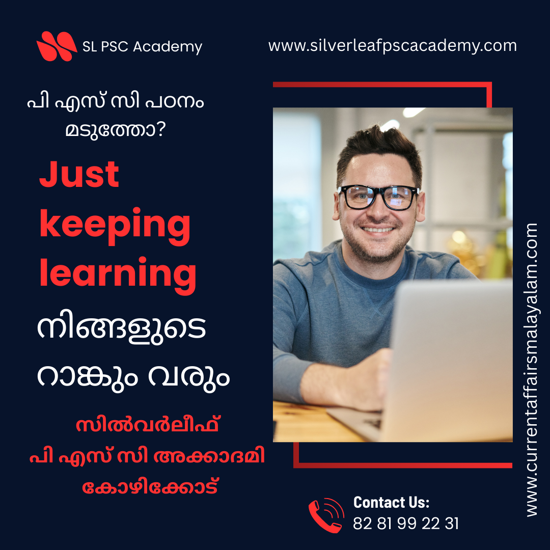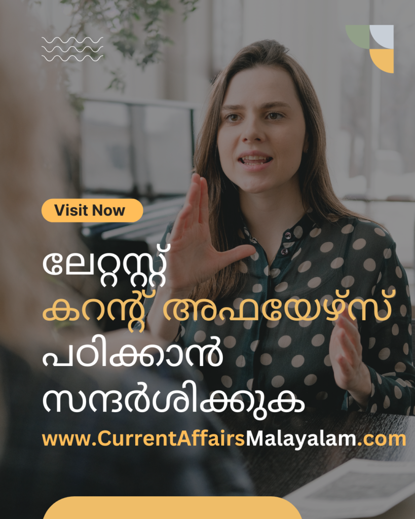 കറന്റ്അഫയേഴ്സ് മലയാളം.കോം വാട്സ്ആപ്പ് ചാനലില് അംഗമാകൂ! ദിവസവും കറന്റ്അഫയേഴ്സ് മാര്ക്ക് ഉറപ്പിക്കാം.